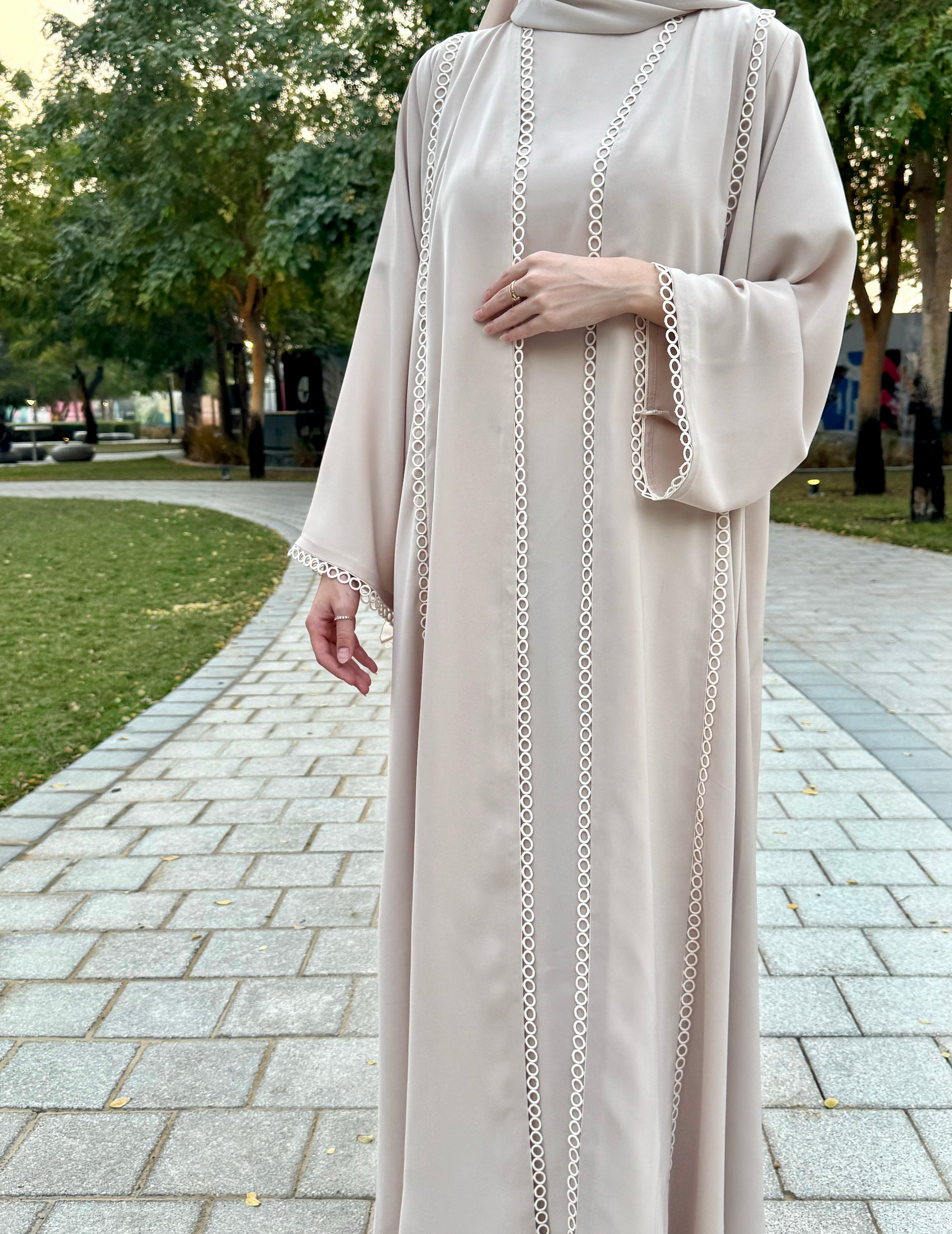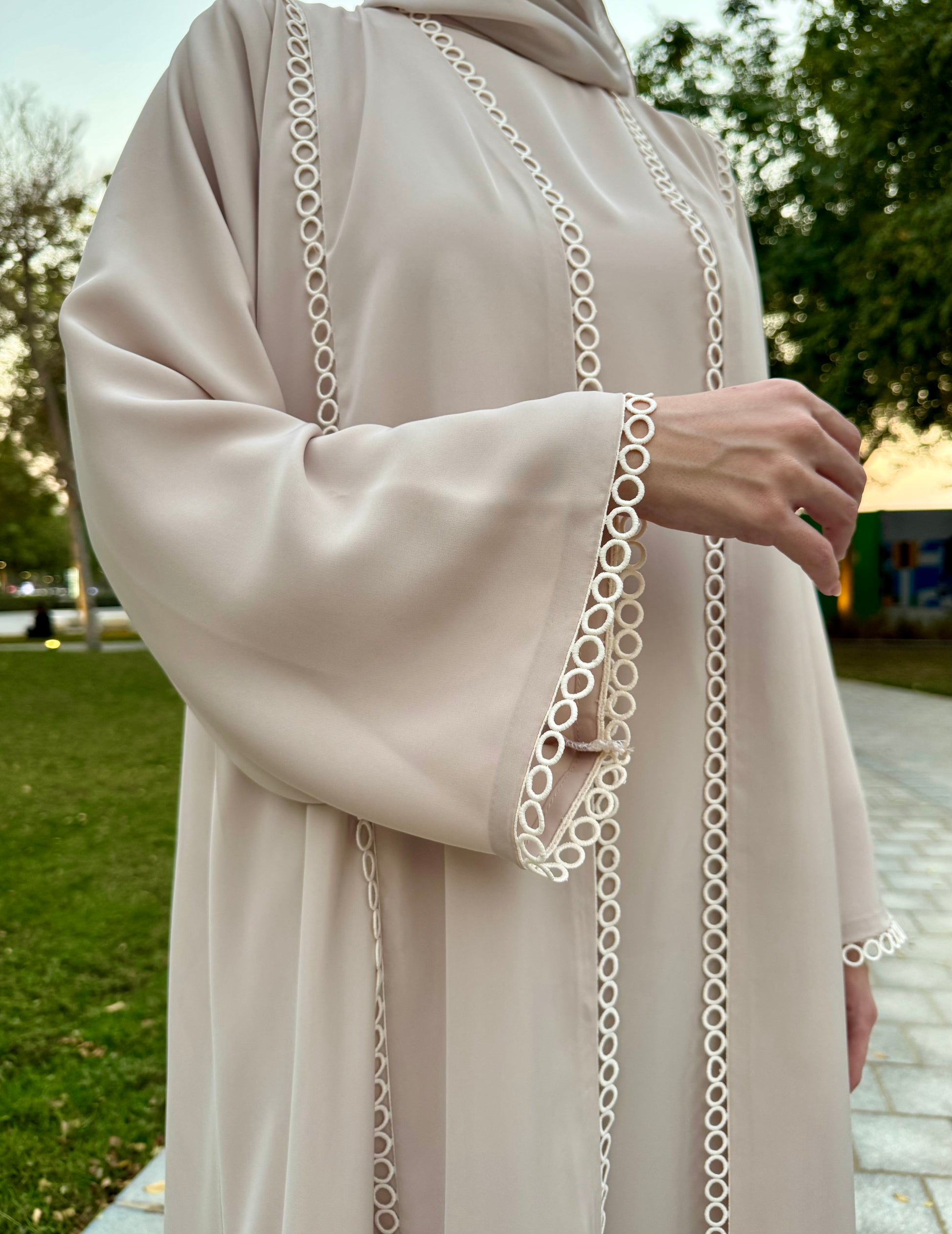 Bitte beachte, dass unsere Abayas nur in emiratischen Größen erhältlich sind. Schau in unsere Größentabelle, um die richtige Größe für dich zu finden